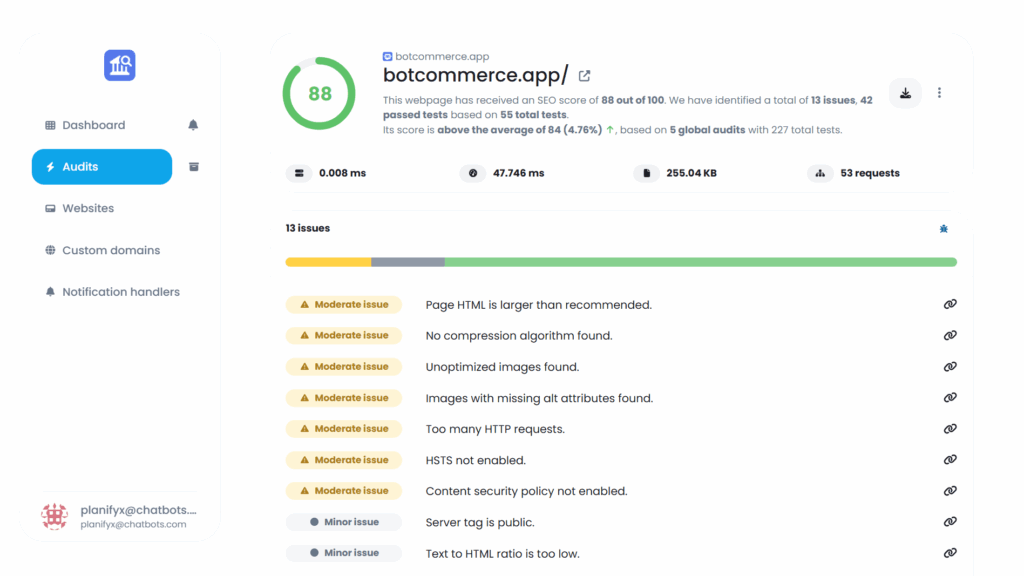 Run AI-powered SEO audits to analyze pages, sitemaps, or raw HTML, uncover issues with 50+ tests, schedule recurring checks, track progress, and generate shareable reports to improve rankings, performance, and website health.